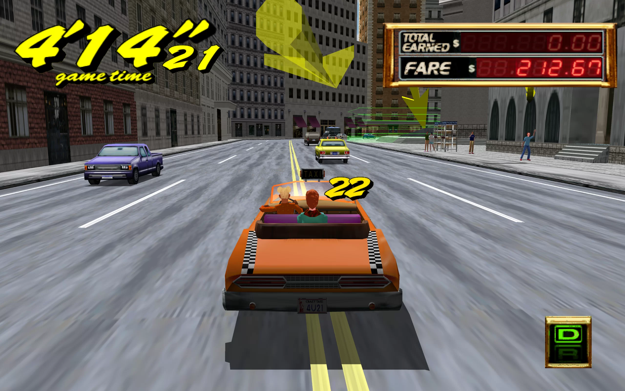 The gameplay of Crazy Taxi: Fare Wars offers players the opportunity to take control of various taxis with unique characteristics. The main goal is to deliver passengers to their destination as quickly as possible while following the crazy traffic rules. Crazy Taxi: Fare Wars combines the games Crazy Taxi and Crazy Taxi 2, while maintaining their original gameplay.