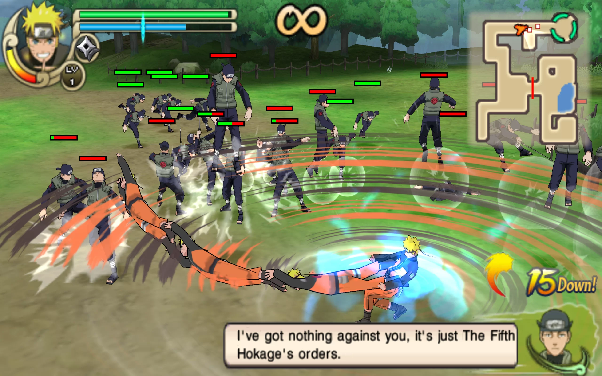 The gameplay includes large-scale battles where players must fight hundreds of enemies at once, using various combo attacks, special moves, and support teams. The game offers several modes, including a story mode that covers key story arcs from "Naruto Shippuden," and a "Tag Battle" mode where players can team up with other characters.