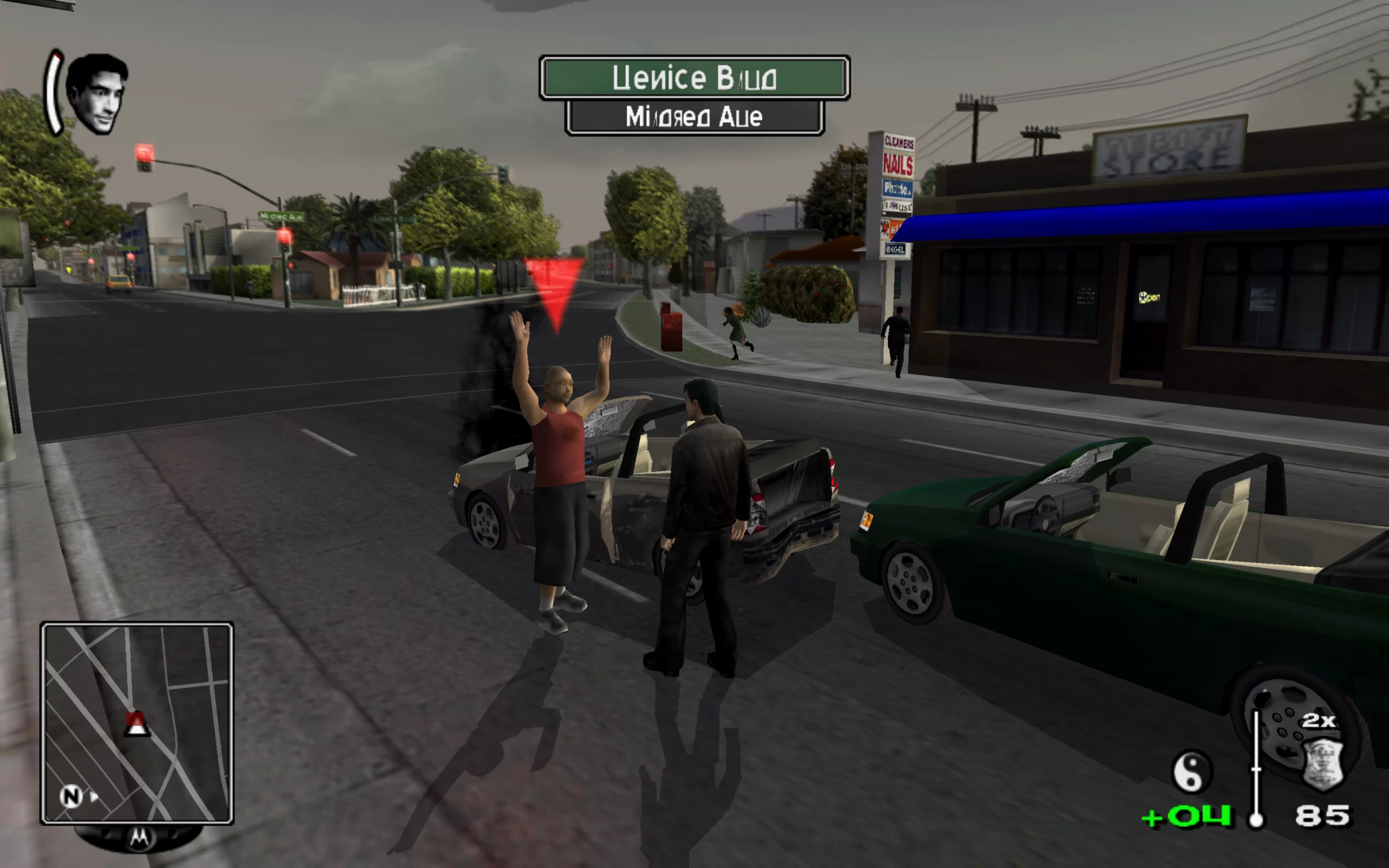 In True Crime: Streets of LA, the open world allows players to freely roam and explore various neighborhoods of Los Angeles, from picturesque beaches to dangerous slums. Throughout the game, Nick Kang must investigate various crimes, from street fights and robberies to more serious offenses like murders and major drug deals.