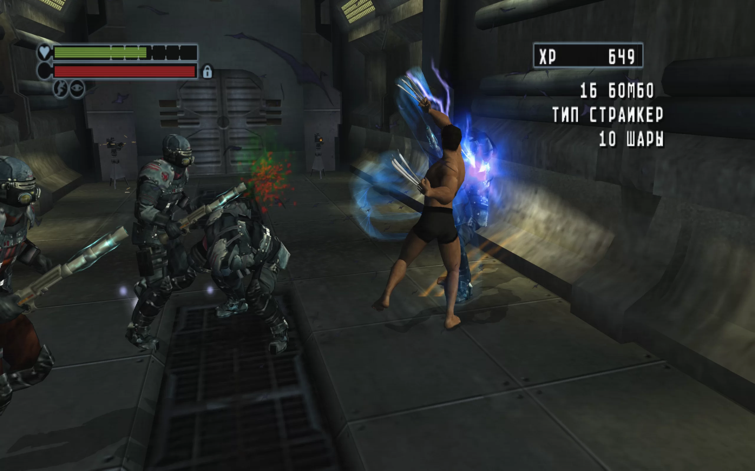 The graphics of the game for PlayStation 2 depict a dark and detailed world of mutants, creating an atmosphere of tension and danger. Character models and movement animations are meticulously crafted, capturing all the nuances of Wolverine and his adversaries. The soundtrack includes dynamic compositions and sound effects that enhance the immersion in the action and dramatic moments of the game.