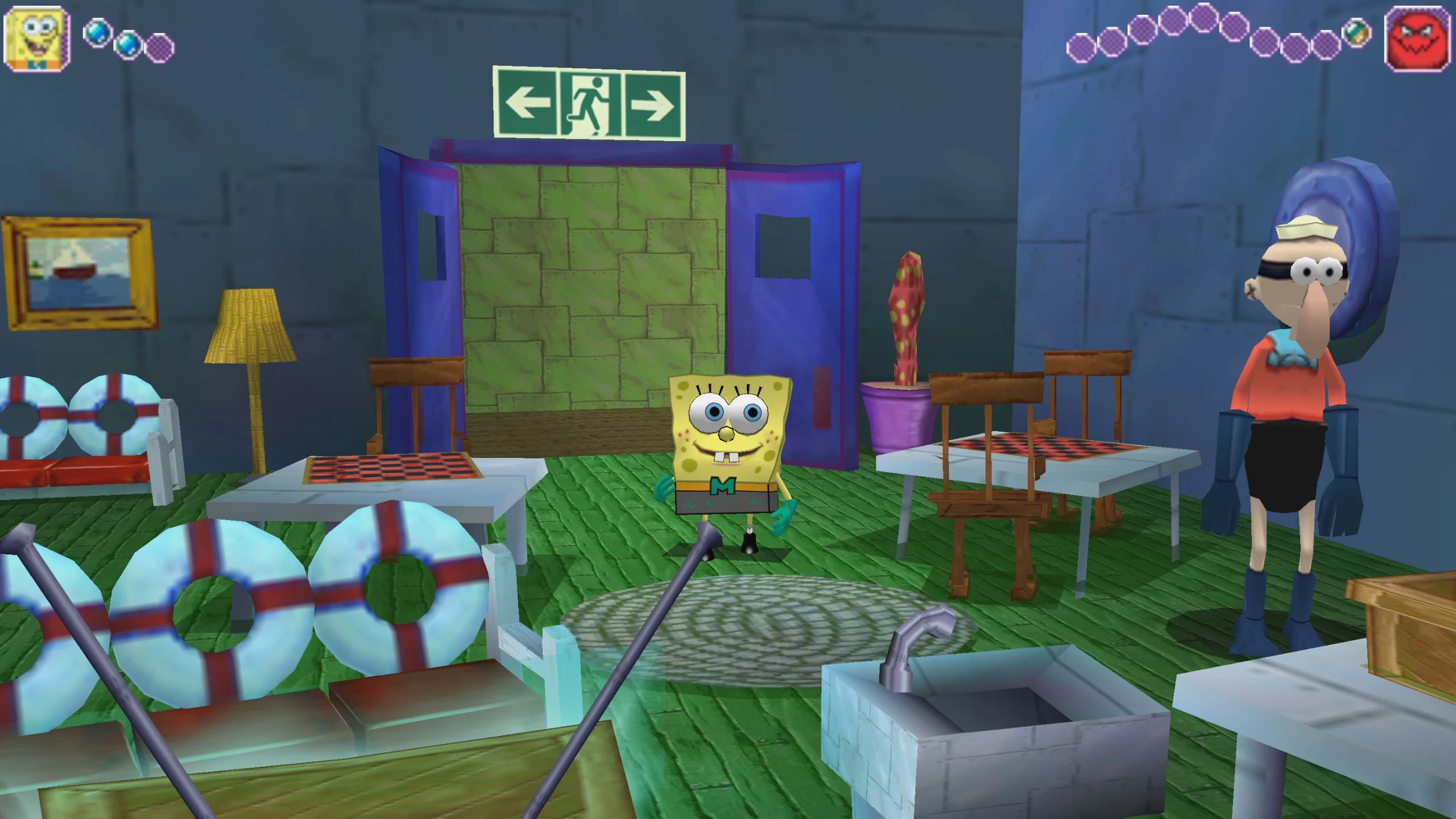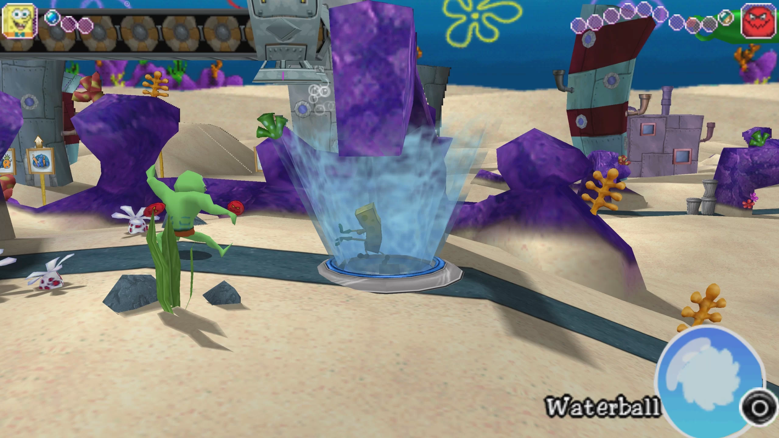 Gameplay includes exploring the levels of Bikini Bottom, solving puzzles, completing quests, and battling enemies. SpongeBob uses his superhero abilities to overcome obstacles and interact with the surrounding world. The game features various missions: collecting items, rescuing characters, and boss battles, making the gameplay engaging and rich.