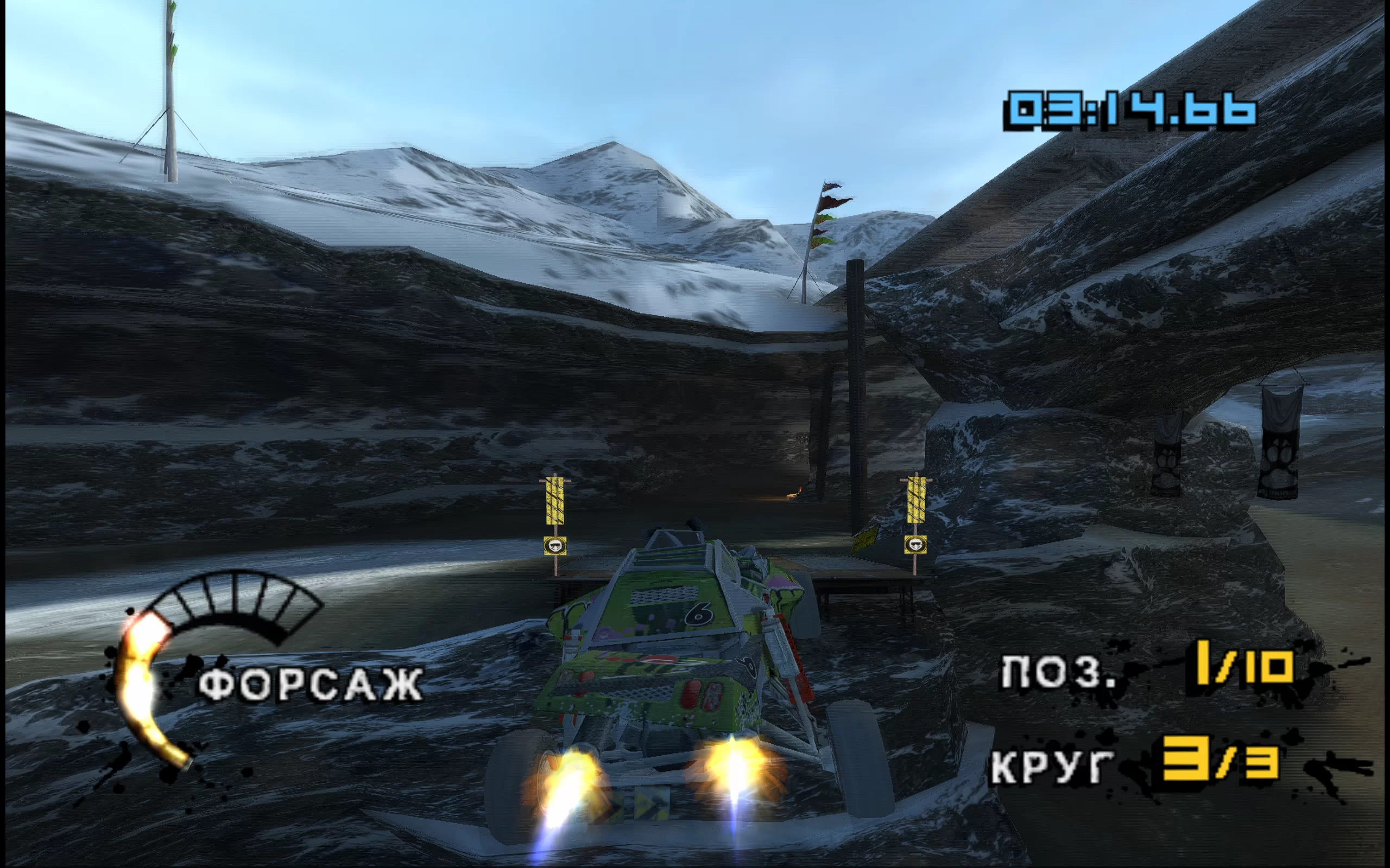 MotorStorm: Arctic Edge is an arcade racing action game for PlayStation 2, developed by Bigbig Studios and Virtuos. The game takes the participants of the legendary MotorStorm festival to the harsh Arctic, where motorcycles, buggies, trucks, and off-road vehicles clash on snowy dirt roads and ice. The project was also released on PSP.
